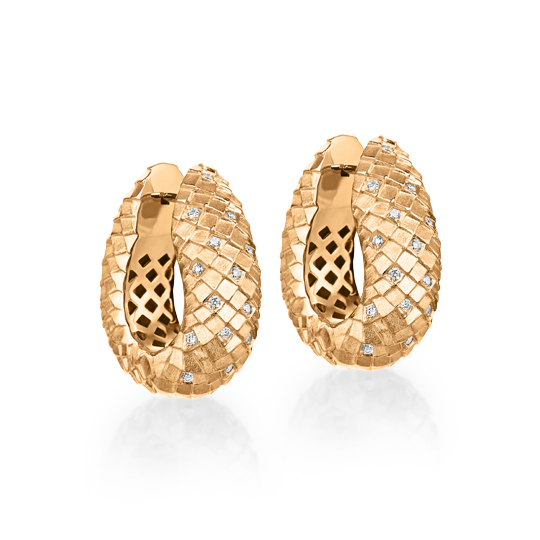 18k Roségold mit 76 weißen Brillanten TW/VS insg. ca. 0,38ct. Durchmesser-Höhe: 2,7cm