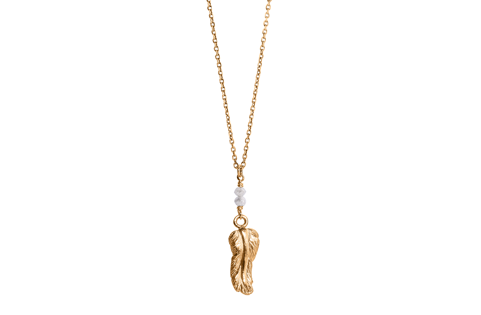 18ct rose gold with two small ICY Diamond-Beads on a chain. Feather size: 1,5cm Length of necklace: 42cm