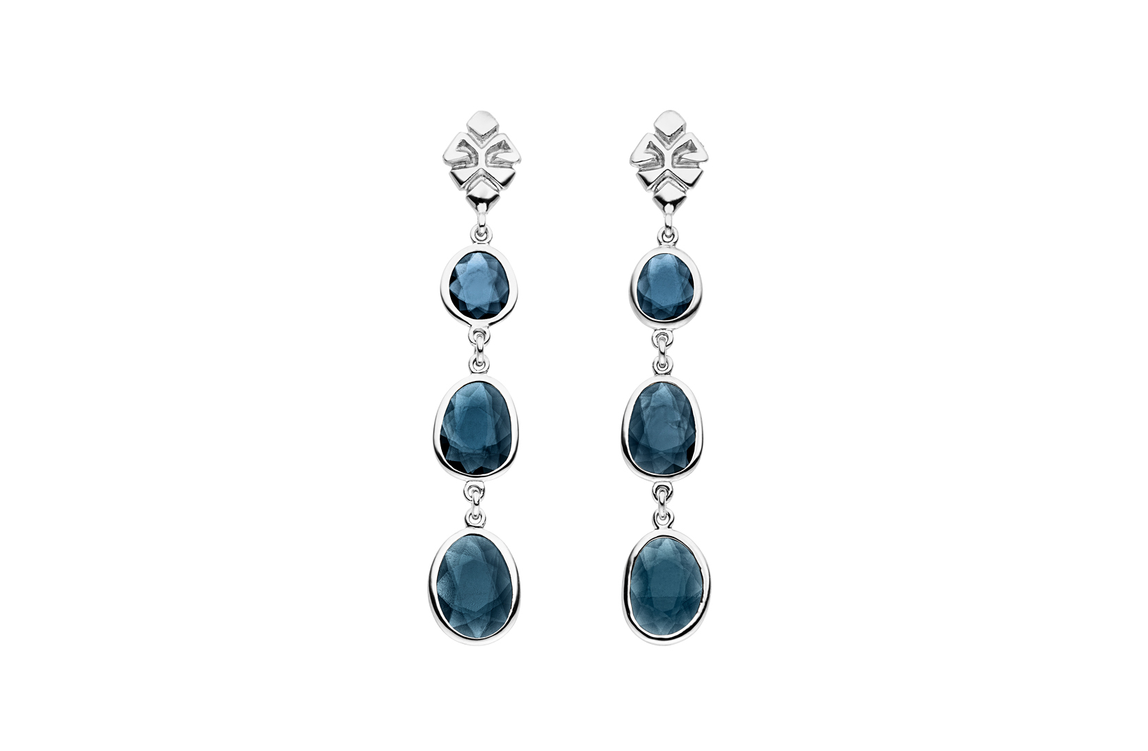 18k Weißgold mit jeweils 3 Double-Rose-Cut Spinelle in filigraner Fassung